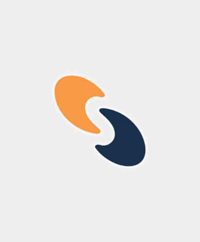 S-shaped logo with orange and navy blue halves on a gray background.
